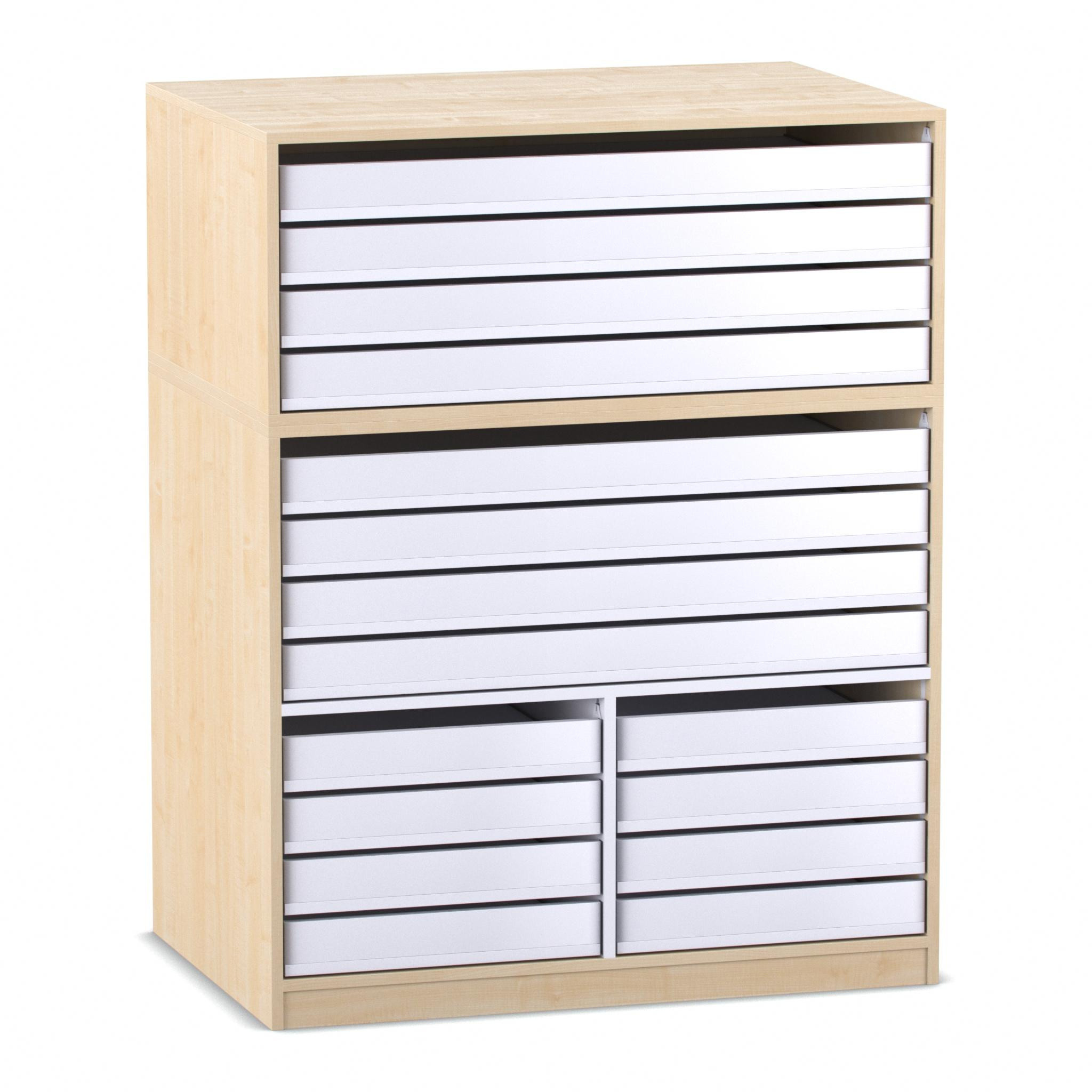 Flexeo® Papier- und Bilderschrank, Ahorn honig, 8 große Auszüge, 8 kleine Auszüge unten