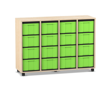 Flexeo Regal mit 4 Reihen, Dekor Ahorn Honig, HxBxT: 92,3 x 130,7 x 40,8 cm, 16 hohe Schubladen grün, Stellfüße