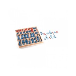 Das vorgeschlagene Modell ist in französischer Kursivschrift verfasst. Die Buchstaben sind vorhanden in 5 Exemplare . Sie sind In Holz und jeder hat einen dafür vorgesehenen Platz in der Aufbewahrungsbox