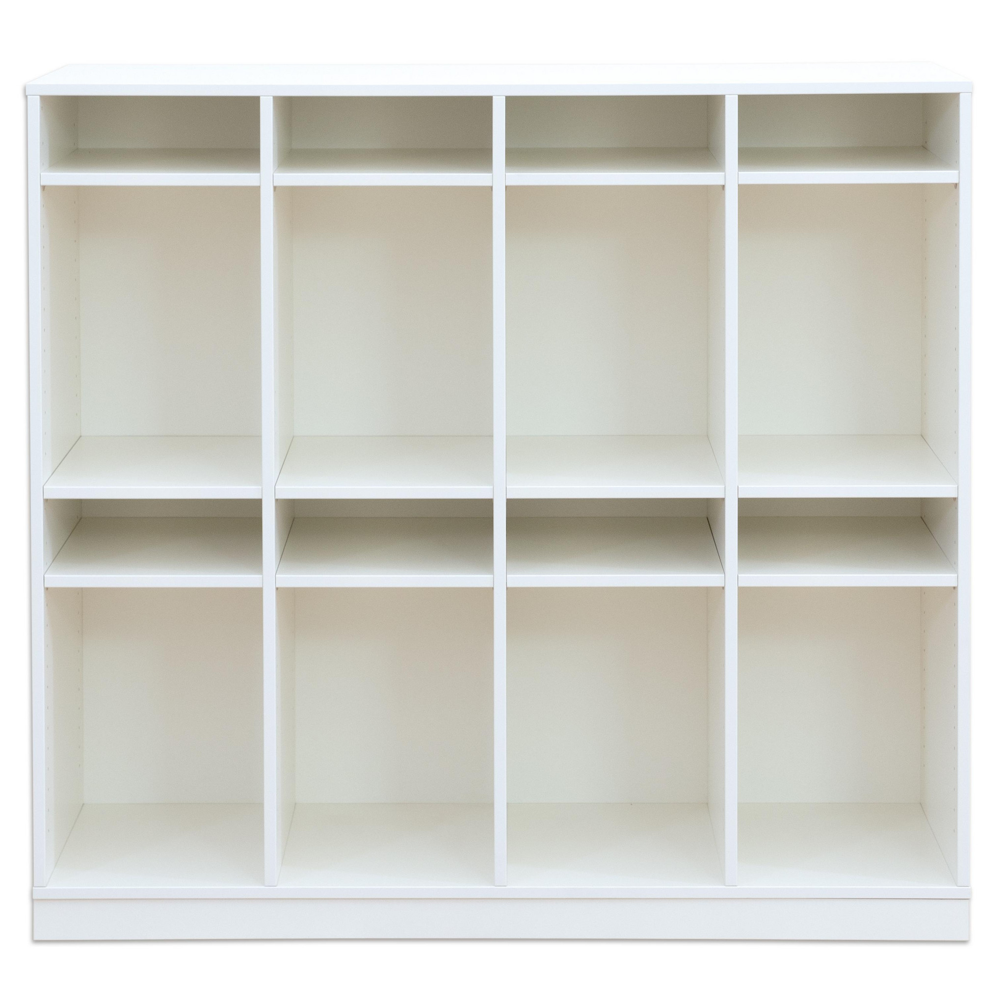 Flexeo Schulranzenregal PRO weiß, 4 Reihen, BxHxT 143,9x132,2x48 cm, auf Sockel