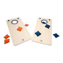 Das Cornhole-Set mit 2 Zielbrettern aus Sperrholz und 8 Säckchen kann zu zweit oder in 2 Teams gespielt werden. Dafür werden die beiden Bretter einander gegenüber gelegt und es wird abwechselnd geworfen. Jedes Team hat dabei eine eigene Farbe. Jetzt geht es um Geschicklichkeit und Treffsicherheit, um die gefüllten Sandsäckchen möglichst genau auf das Brett zu werfen. Für jedes Säckchen, das auf dem Brett liegenbleibt, gibt es 1 Punkt, für Taschen, die ins Loch gehen, sogar 3 Punkte. Wer als Erstes 21 Punkte hat, hat gewonnen, ob als Team oder alleine. Dieses spaßige Wurfspiel ist für Kinder ab 8 Jahren geeignet. Sie können miteinander spielen, z. B. in der großen Pause, oder zu Hause mit ihrer Familie.