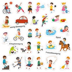 Mithilfe des beiliegenden pädagogischen Begleitmaterials können Sie die Bewegung der Kinder im Alltag steigern, außerdem finden sich Spielideen mit den Aktivitätenbildern in der Anleitung.