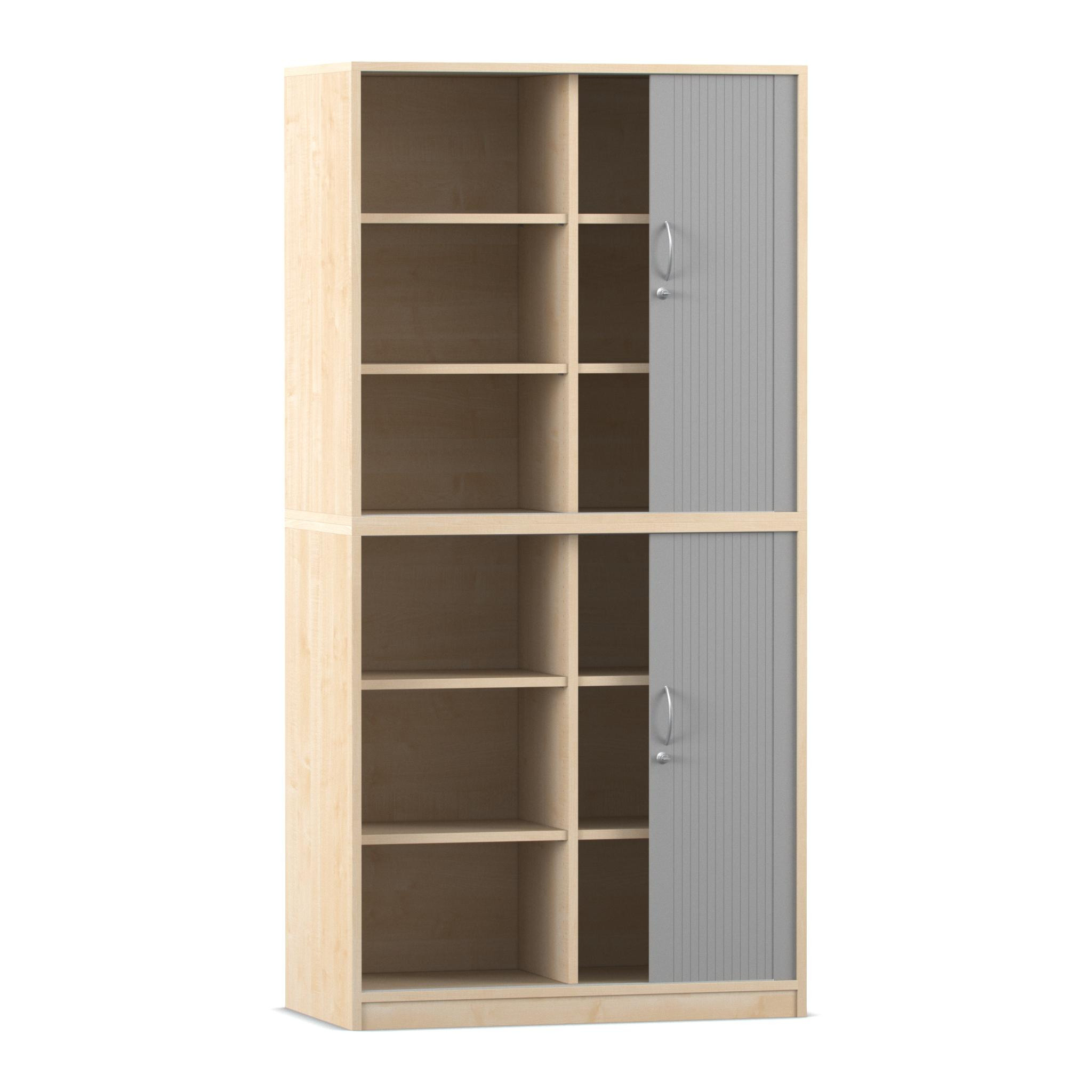 Flexeo® Rollladenschrank, Ahorn honig, HxBxT: 190 x 94,4 x 48 cm, 12 Fächer, Mittelwand