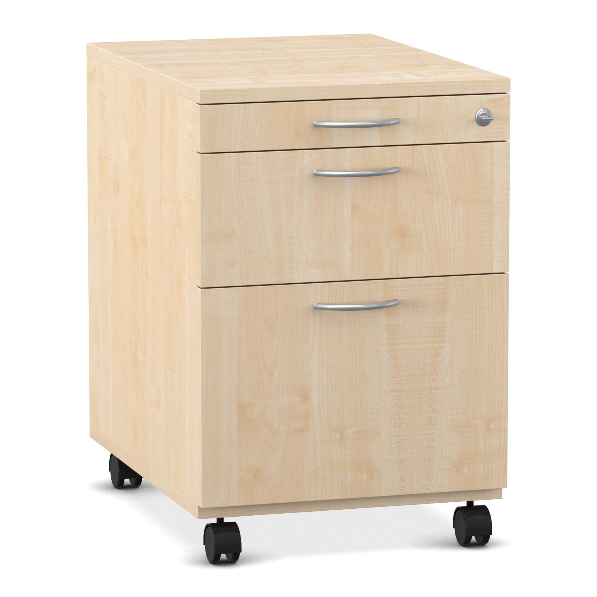 Flexeo® Schreibtisch-Container mit 3 Schubladen, Ahorn honig, HxBxT: 64,7 x 43,4 x 60,2 cm, Rollen, Bogengriff mit Schloss