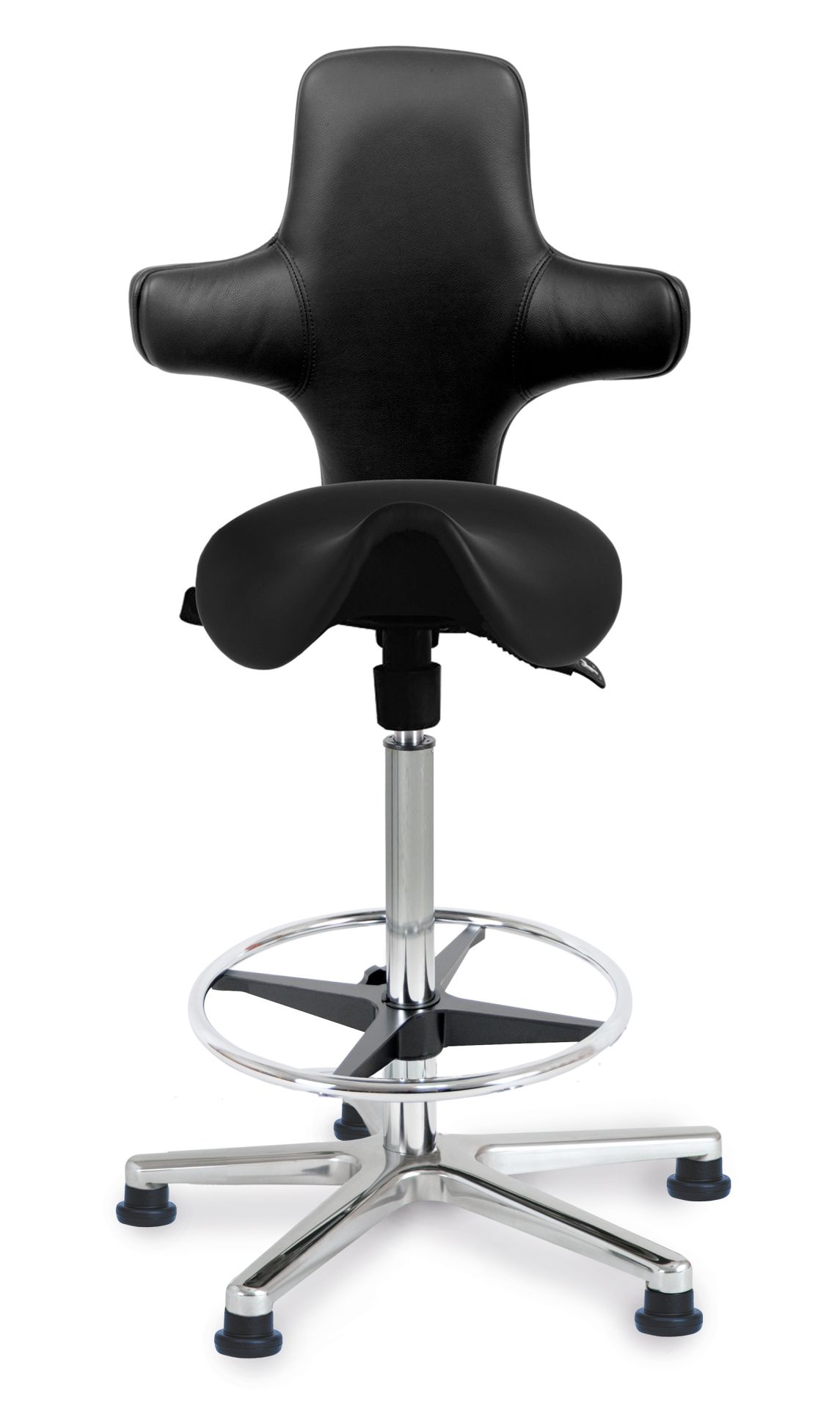 Sanus Bürostuhl Variowip Hochstuhl, Sattel, Leder, 58-85 cm, schwarz, Fußring, auf Gleitern