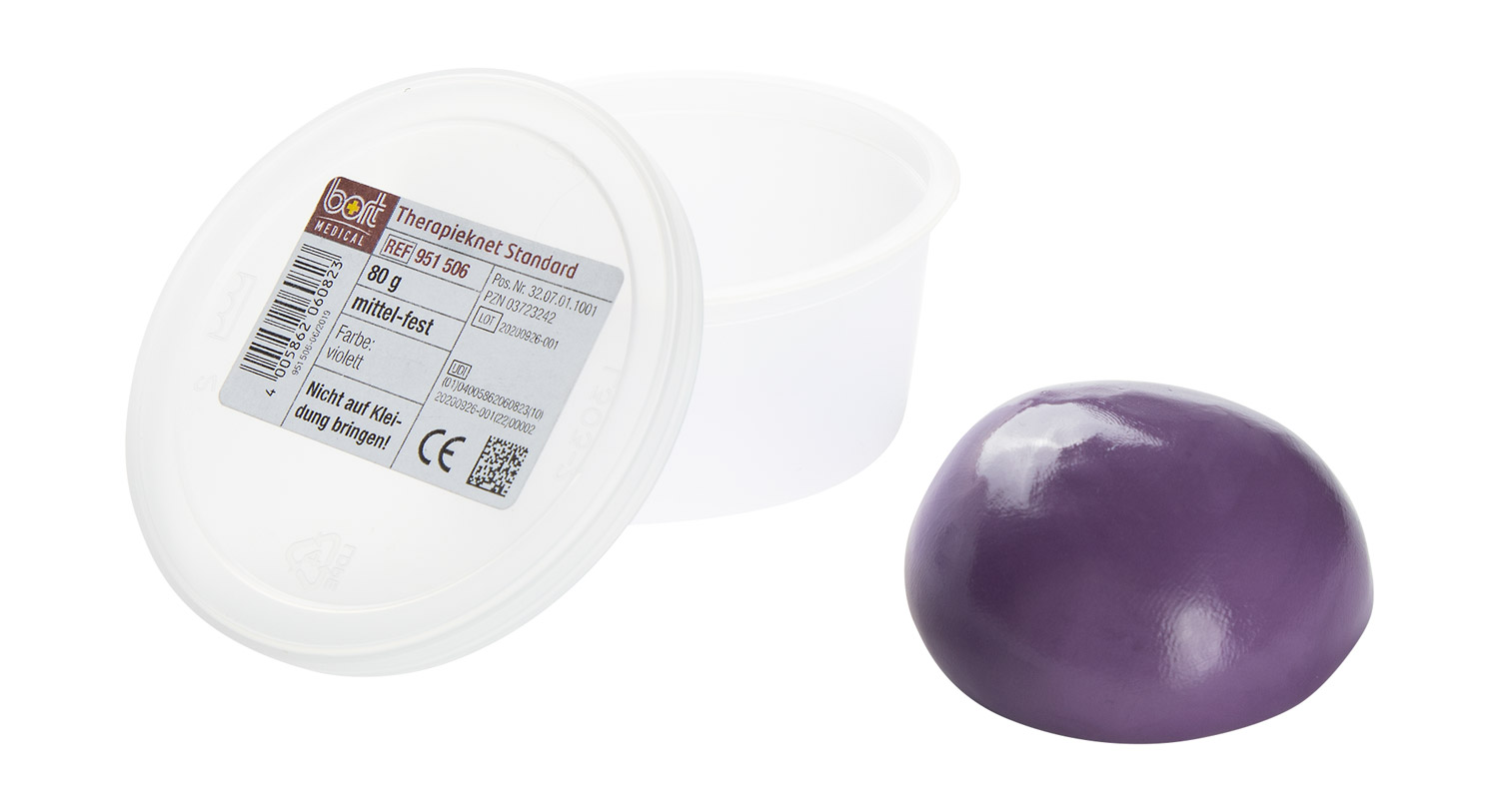Kneten mit Therapiekitt kräftigt die Handmuskulatur sowie die der einzelnen Finger. In vier verschiedenen Festigkeiten fürs individuelle Trainingsprogramm, alle lösungsmittelfrei und gesundheitlich unbedenklich.