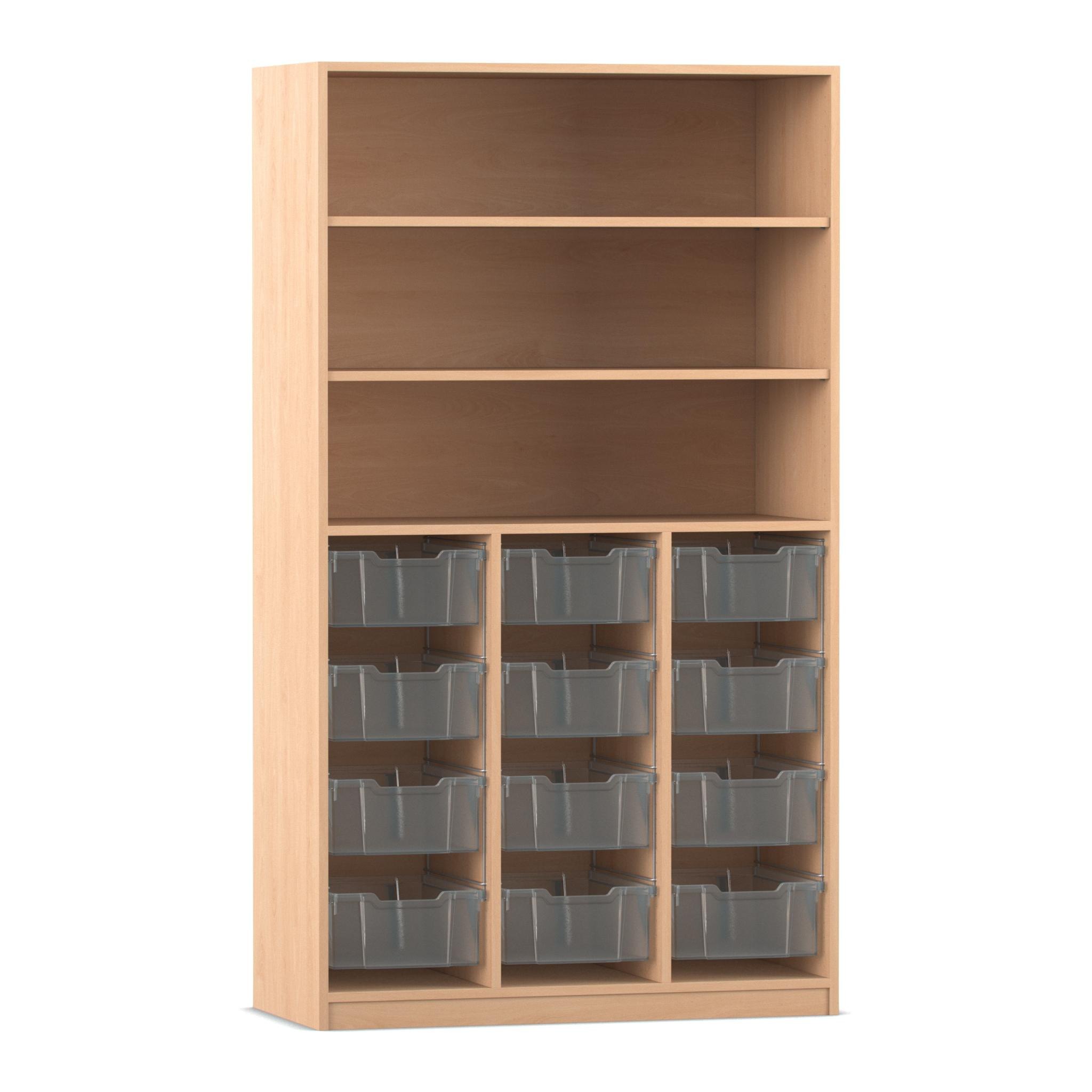 Flexeo® Regal PRO, Buche hell, 3 Reihen, 12 Boxen transparent Gr. M, 3 Fächer, HxTxB: 190 x 108,1 x 48 cm