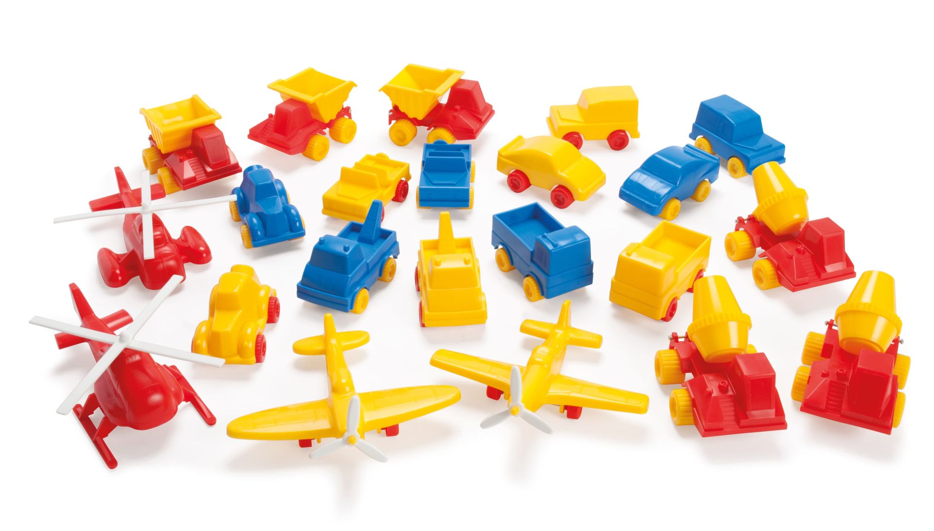 Das Set Classic Autos und Flugzeuge enthält 22 farbenfrohe Fahrzeuge, die Kinder zu kreativem Rollenspiel und fantasievollen Szenarien einladen. Ob Autos oder Flugzeuge – die leuchtenden Farben wie Rot, Gelb und Blau sprechen die natürliche Neugier der Kinder an und fördern spielerisch Lernprozesse.