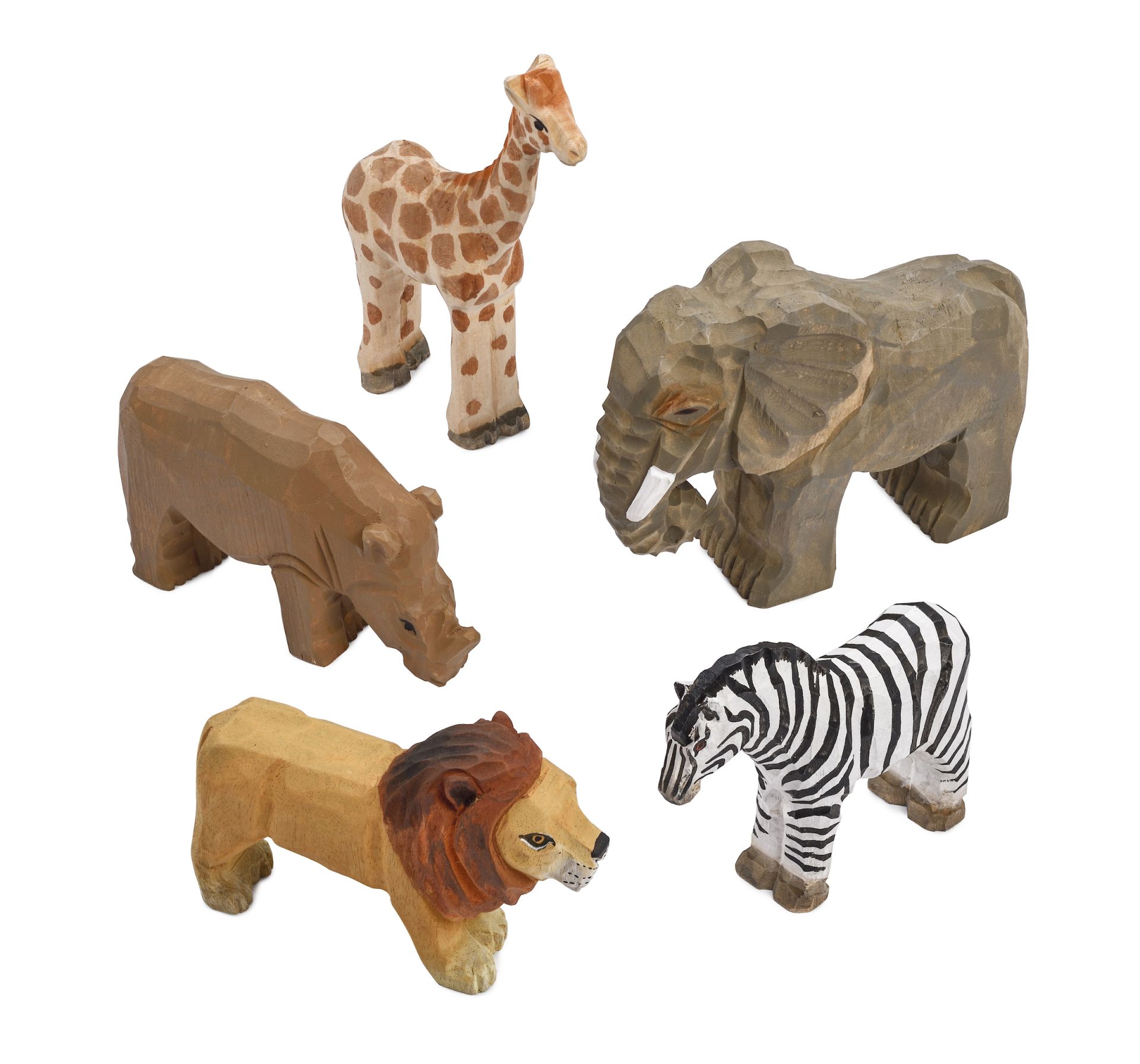 Handgeschnitzte Safaritiere für erstes Weltwissen