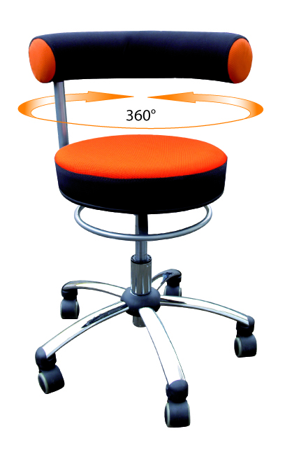 • die aus dem Sitzen heraus vollkommen schwenkbare gepolsterte Lehne (um 360º), lässt sich in jede nur denkbare Position drehen: seitlich oder zum Aufstützen der Arme vorn und natürlich nach hinten zur Stützung des Rückens