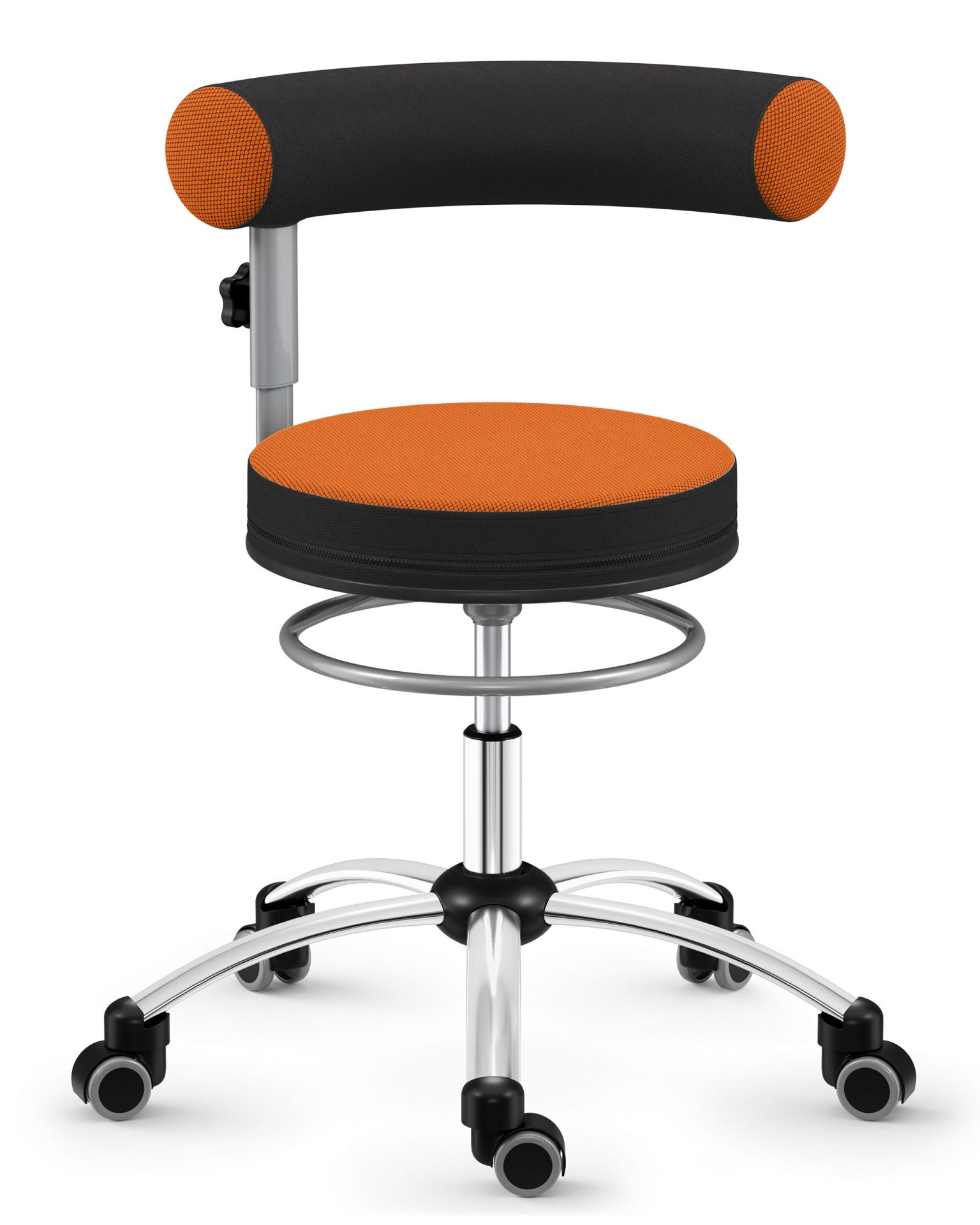 Sanus®-Gesundheitsstuhl 36-43 cm mit höhenverstellbarer Lehne, Stoff orange/schwarz, mit Bürorollen
