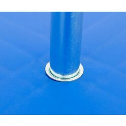 Hierzu wird die Stange einfach in das Loch des untersten Brettes geschraubt - fertig ist der Rollbrett-Aufbewahrungswagen.