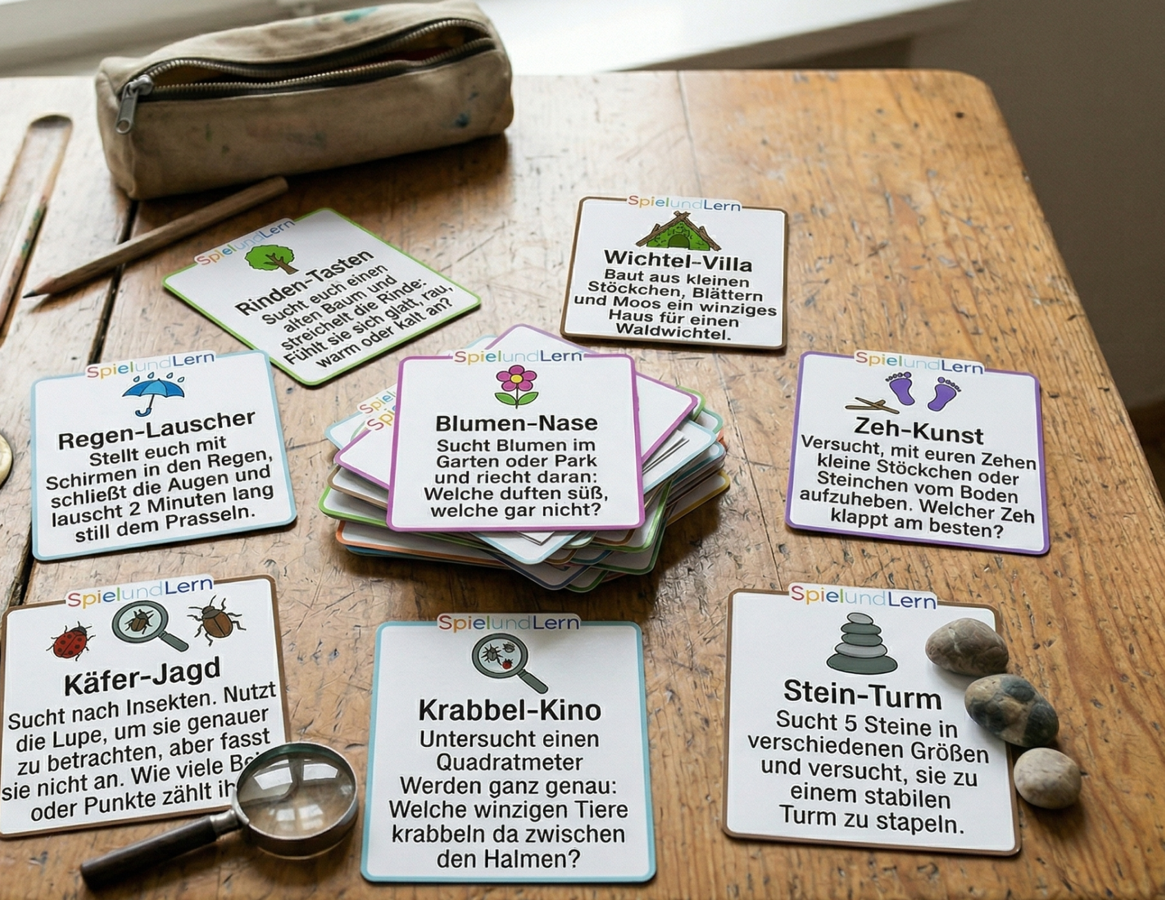 Kleine Entdecker-Missionen für draußen, um den Kita-Alltag ohne großen Aufwand in ein Abenteuer zu verwandeln.
